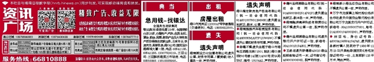 海口腾宏联房地产咨询有限公司(统一社会信用代码:914601007931296988)遗失营业执照正、副本、公章,声明作废。