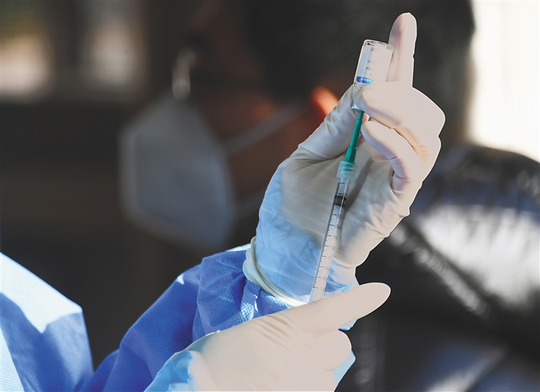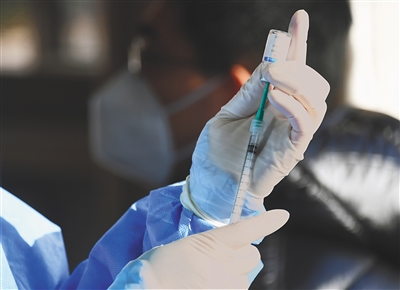 12月17日,北京医护人员在做鼻喷第二剂次加强针接种前准备工作。新华社发