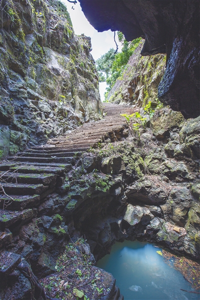 三永公路龙桥段,一口澄碧湖水呈现眼前,这是有名的扬太古井,“太”在古汉语中常与“泰”“大”通用,故“扬太”乃“大井”之意。该泉井水绵滑甘冽,口感好,远近取水者络绎不绝,扬太村亦以井为名。扬太井为圆形,直径达10米,井周井底全是黝黑的火山蜂窝石,正前方还竖着三根石条作为井门,开成两口,一进一出,防止汲水时碰撞。扬太井地势较高,却从未干涸。2022年,政府对扬太古井周边进行环境整治,安装了防护栏,井台也铺上了整齐的石板,三永公路也为其绕道,扬太古井成了海口的一处特色乡村景观。