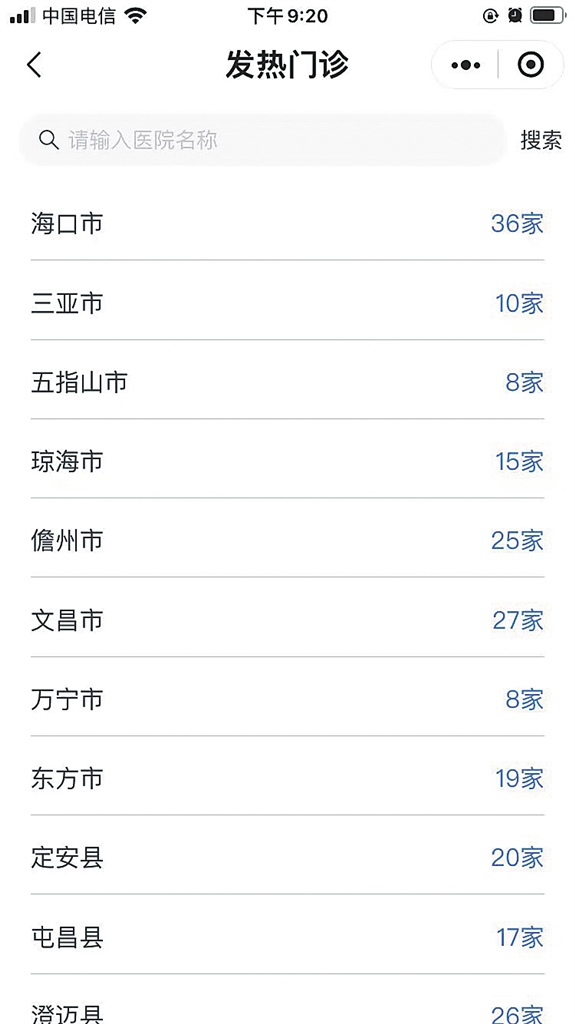 本报海口12月19日讯 (记者马珂)12月19日,为科学精准防控疫情,加强疫情期间广大居民群众的医疗服务保障,引导发热患者有序就诊,“海南健康岛”小程序先期上线全省331家发热门诊,同时公开电话、地址,方便居民就诊。