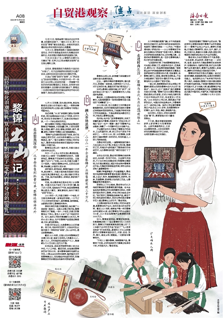 黎成有认为他的想象并不只是想象,“出台政策、资金扶持、资源引进……近年来,省委、省政府大力推进黎锦的系统性保护、创造性转化、创新性发展,我们正处在黎锦产业发展的春天,黎锦产业规模化、标准化、集群化的布局成为现实指日可待。”