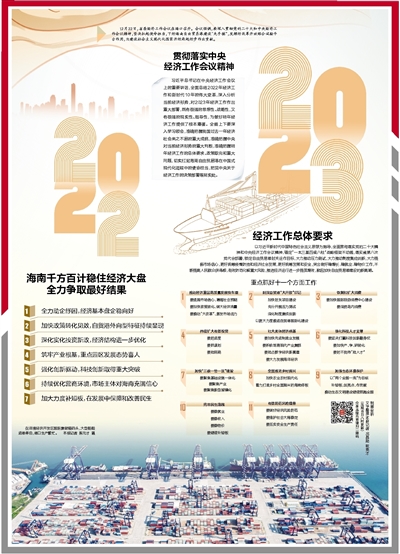 12月22日,省委经济工作会议在海口召开。会议强调,要深入贯彻党的二十大和中央经济工作会议精神,坚决扛起使命担当,下好海南自由贸易港建设“先手棋”,发挥好改革开放综合试验平台作用,为建设社会主义现代化国家开好局起好步作出贡献。