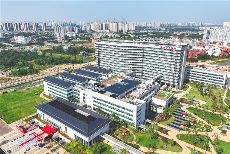 12月23日,俯瞰当天正式启用的海南省中医院江东院区。据悉,该项目位于海口市椰海大道延长线旁,占地面积221亩,总投资18.25亿元,是省政府重点建设项目,也是江东新区首个医院类项目和重要基础配套设施。文/本报记者 马珂 刘梦晓 图/本报记者 武威