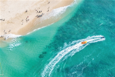 近日,在三亚蜈支洲岛,阳光海岸、海浪沙滩等美景,以及冲浪、潜水等多样的游玩体验项目,让游客流连忘返。