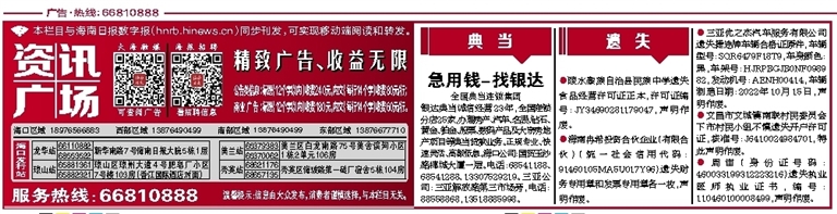银达典当诚信经营23年,全国连锁分店25家,办理房产、汽车、名表、钻石、黄金、铂金、股票、数码产品及大宗房地产项目等典当贷款业务。正规专业、快速灵活、高额低息。海口公司:国贸玉沙路椰城大厦一层。电话:68541188、68541288、13307529219。三亚公司:三亚解放路第三市场旁,电话:88558868,13518885998。