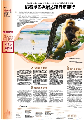 今年以来,我省牢记嘱托,坚持生态立省不动摇,牢固树立和全面践行绿水青山就是金山银山的理念,沿着绿色发展之路开拓前行,建设生态一流、绿色低碳的自由贸易港。