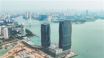 据了解,该项目位于海口市海甸岛海口湾,东临世纪大桥,南临琼州海峡,总用地面积3.41万平方米,总建筑面积17.53万平方米。项目建成后,将打造成又一处集商务办公、旅游休闲、文化娱乐为一体的景观带。本报记者 张茂 实习生 杨哲 摄