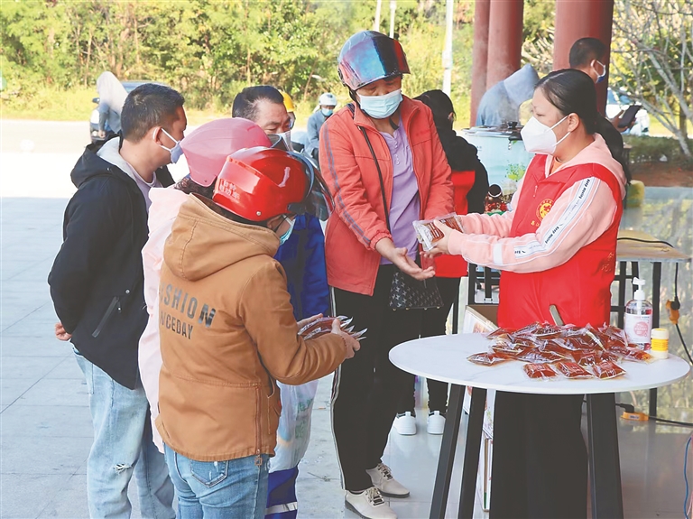 在保梅岭游客服务中心,志愿者们将精心熬制好的中药“大锅汤”分发给闻讯赶来的群众,细心讲解服用后的注意事项,提醒群众在服用汤剂后还需做好自身防护,当好自己健康“第一责任人”。