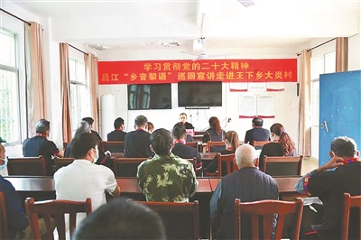 为了把党的二十大精神传遍千家万户,昌江县委宣传部从乡镇、村“两委”、驻村工队队员、退休老干部和乡贤中选拔一批会说本地方言的干部,组建了8支“乡音黎语”宣讲小分队,经过集中培训后深入全县各乡镇、村庄,用“方言土话”宣讲党的二十大精神,帮助群众学习党的二十大精神,让大家听得懂,记得住。