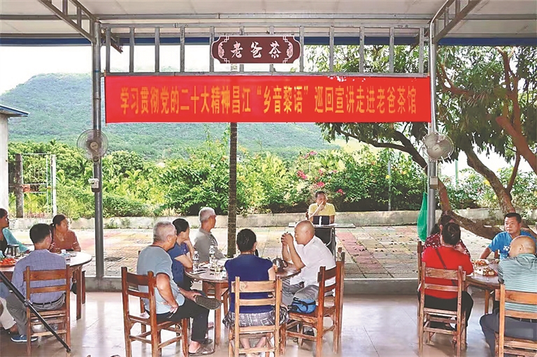 此外,昌江还组织多支宣讲队伍,深入新时代文明实践所(站)、老爸茶馆、田间地头、生产车间等地,采取“茶话会”“喇叭宣讲”等方式开展宣讲。截至目前,昌江共开展宣讲295场,听讲人数2.3万人。