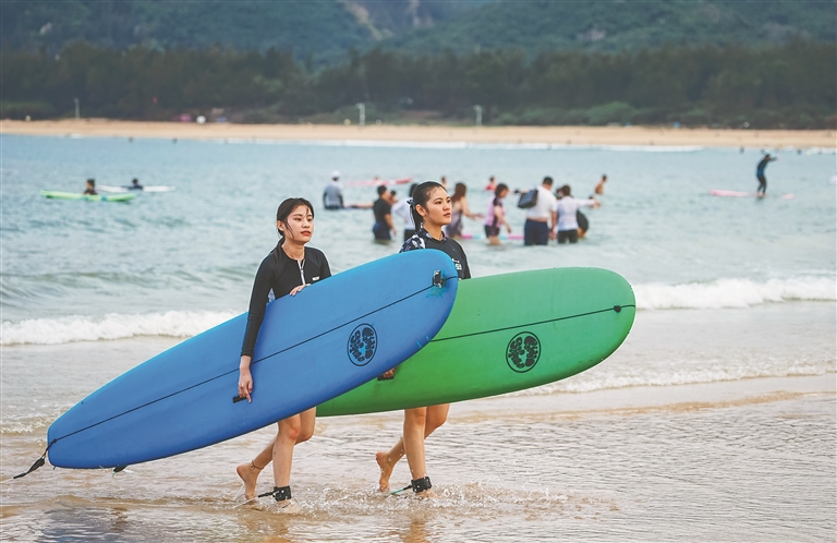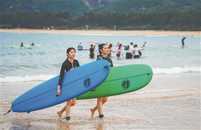 日益改善的海洋生态环境,丰富了海底物种资源的多样性。在三亚、海口、文昌、儋州等多地海域,时常可以见到海豚跃动的欢快身影;在蜈支洲岛、分界洲岛海域,红的、蓝的、黄的软体珊瑚摇曳身姿,形态各异的鱼儿自由自在游动,吸引越来越多游客慕名前来潜水。依海而兴、向海而生,“海洋蓝”正绘就海南高质量发展的底色。
