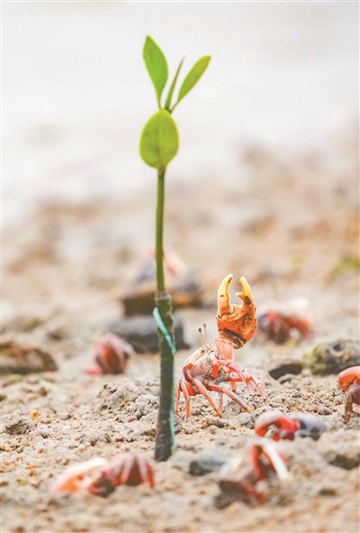 于湿地,见万物生长。飞鸟、走兽、水草、红树、昆虫、底栖生物,这些都是大自然的“精灵”,不计其数,都能在湿地中找到属于自己的安居家园。