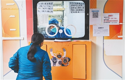 12月28日,在海口市美兰区板桥路海山厂宿舍区门口的“一站式”发热就医服务站,护士在给患者开清热解毒、利咽止痛的中成药。从咨询诊疗到完成配药,整个过程5分钟左右就可以完成。