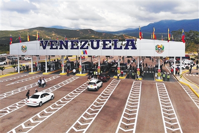 1月1日,委内瑞拉和哥伦比亚全面重新开放两国边境。图为从哥伦比亚库库塔方向驶来的车辆准备进入委内瑞拉乌雷尼亚。新华社/法新