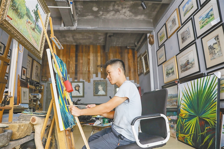 而屯昌画师郑惠和冯丹妹则从自身开始改变,积极参加培训班和各种艺术交流活动,“我俩还考虑联手打造一个网红店铺,举办油画展览,拉近艺术与大众之间的距离。”