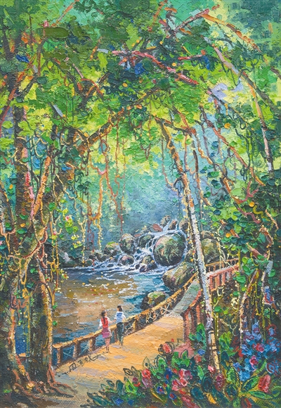 对这股原创之风,市场也予以积极反馈。“在2022年中国(海南)国际热带农产品冬季交易会上,各五星级酒店向屯昌画师定制了几百幅原创油画,有椰风海韵、热带雨林、山兰稻丰收等海南特色风光,作为宾客伴手礼。”陈益君认为,这些订单,代表着外界对屯昌画师原创能力的认可。