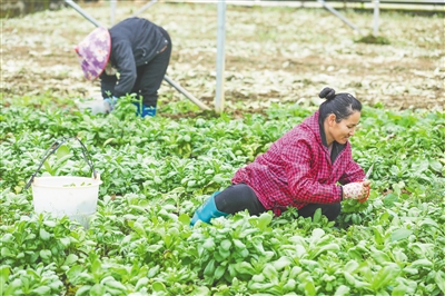近日,在屯昌县坡心镇猪哈哈农场的蔬菜大棚内,工人忙碌着采收蔬菜。