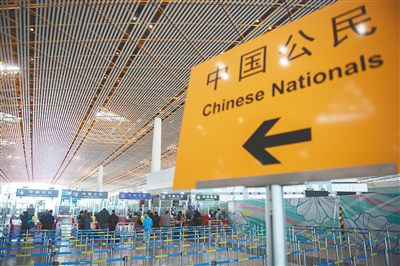 图为首都国际机场T3-E边检查验柜台区域。(本栏图片均由新华社发)