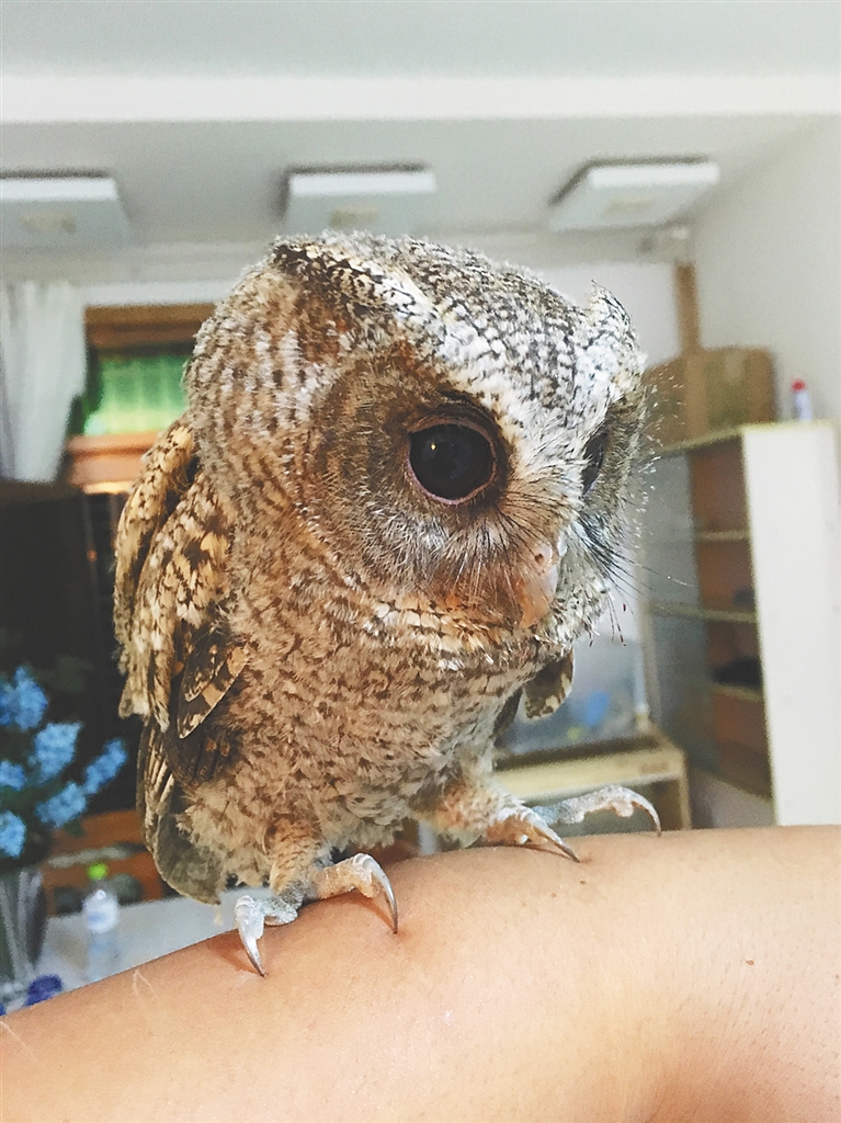 谷峰也热衷于物种保护。有一次,一个朋友捡了一只小领角鸮,不知怎么办,辗转送到谷峰那里。由于难以放归原地,谷峰咨询了猛禽救助专家后,用两个月的时间养大了那只小猛禽,进行野化训练,帮助它自己捕食。