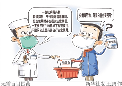 首都医科大学附属北京朝阳医院副院长童朝晖说,目前没有针对新冠病毒的特效药。一些抗病毒药物能够抑制、干扰新冠病毒复制,但在使用时存在很多注意事项,一定要在医生的指导下规范使用,不建议公众囤药并自行在家使用。
