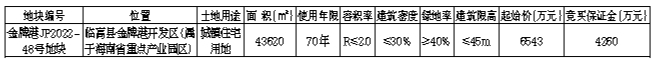 四、竞买申请:(一)竞买人资格:1.中华人民共和国境内外的法人、自然人或其他组织(法律另有规定者除外)均可申请参加竞买(注:失信被执行人不得参加本次竞买),申请人应单独申请,不接受联合体竞买。2.经政府相关部门核实,存在下列情形之一的,申请人及其控股股东禁止参加竞买:(1)存在伪造公文骗取用地和非法倒卖土地等犯罪行为的;(2)存在非法转让土地使用权等违法行为的;(3)因企业原因造成土地闲置一年以上的;(4)拖欠土地出让金的。(二)交易资料获取方式:本次挂牌出让的详细信息和具体要求,见挂牌出让手册及其他相关文件。手册和文件可从海南省建设用地使用权和矿业权网上交易系统(以下简称网上交易系统,网址:http://lr.hainan.gov.cn:9002)查看和打印。(三)竞买申请方式:本次交易活动竞买申请环节采取线上方式进行,有意向的竞买人可登录网上交易系统提交竞买申请,按要求上传竞买申请文件。不接受电话、邮寄、书面、口头等其他形式的申请。竞买申请时间:2023年1月12日08:30至2023年2月17日17:00(以网上交易系统服务器时间为准,下同)。(四)竞买保证金:竞买人在网上交易系统提交竞买申请时,须按照挂牌出让手册的有关规定足额缴存竞买保证金或使用银行保函方式提供竞买保证金。缴存竞买保证金的,应在网上交易系统上选定一家银行,系统将自动生成唯一的随机竞买保证金账号,保证金缴存银行一经选定不能更改,保证金到账时间以银行信息系统入账时间为准;缴存的竞买保证金币种为人民币,不接受外币,且不属于银行贷款、股东借款、转贷和募集资金所得,并出具承诺。使用银行保函方式提供土地竞买保证金的,竞买人应向银行申请开立《土地竞买保证金保函》,纸质保函由银行将原件密封后直接指定专人送达或通过邮政特快专递寄送给出让人指定地点由指定联系人签收,需在竞买保证金到账截止时间前2个工作日送达。竞买人应审慎注意。竞买保证金到账截止时间为:2023年2月17日17:00。(五)竞买资格确认:竞买资格审核开始后,出让人在2个工作日内、资格审核截止时间前完成竞买申请文件审核。竞买人提交竞买申请时应充分考虑网上交易活动的竞买资格审核时效,并进行审慎注意。竞买人的竞买申请文件审核通过,且竞买保证金已按要求交纳的,网上交易系统自动发放《竞买资格确认书》,确认其获得竞买资格。竞买资格审核时间:2023年2月8日08:30至2023年2月17日17:30。