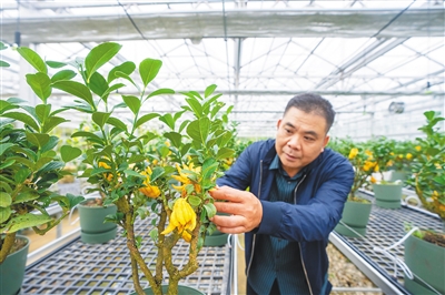 1月10日,位于保亭黎族苗族自治县的七仙岭全球热带水果博览中心,工作人员正在查看佛手生长情况(大图)。