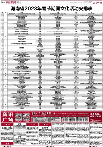 海南省2023年春节期间文化活动安排表