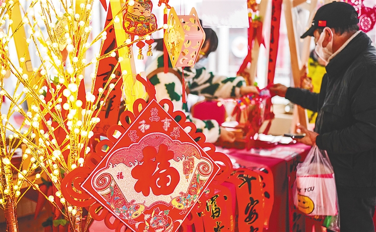 在各大线上平台,“兔”元素年货同样走俏。抖音电商发布的《“2023抖音好物年货节”数据报告》显示,截至1月7日,兔年相关商品销量环比年货节前增长超70%,兔背带红包、春节立体投影灯笼、兔年生肖对联等商品,将兔子形象与中国风元素巧妙结合,年货节期间销售额大幅增长。