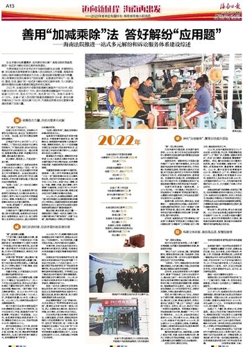 ~~~——海南法院推进一站式多元解纷和诉讼服务体系建设综述