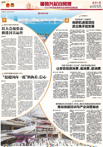 “实施‘技能自贸港’行动”“深入推进就业质量提升行动”等被写进政府工作报告2023年工作安排中,透露出海南促进职业教育改革的决心,“职业技能培训”“技能人才培养”“校企产学研融合”等成为代表委员口中的高频词汇。