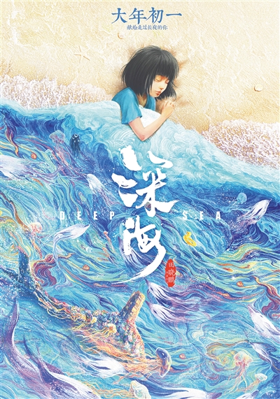 此外,备受国漫迷期待的动画电影《深海》也将于今年春节档和观众见面。该片是《西游记之大圣归来》导演田晓鹏耗时7年完成的动画电影,首度尝试探索中国特有的三维动画形式——“粒子水墨动画”(将中国水墨画风与三维动画技术相结合)。影片讲述了一位少女误入深海的冒险故事,主打国漫视觉特效。日前发布的预告片,提前让观众窥见了一个瑰丽绚烂的深海世界。