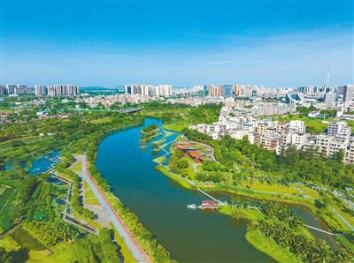 俯瞰海口美舍河凤翔湿地公园。本报记者 李天平 摄