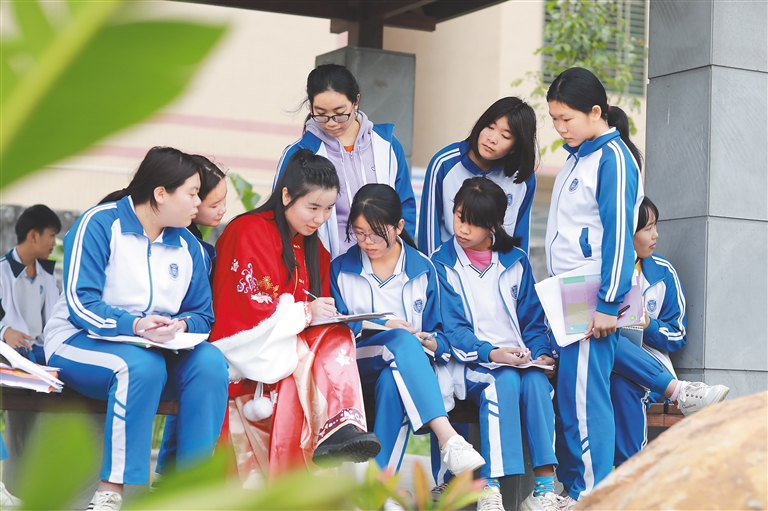 在文昌文北中学,学生体验“书院铸魂 美育润心”冬令营课程。(资料图)