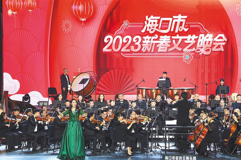 1月18日晚,海口市2023新春文艺晚会在海口湾演艺中心举行。晚会现场,19个节目接连上演,包含合唱、琼剧、歌舞等多种节目,充分展现了海口在海南自贸港建设中所迸发的发展活力。文/本报记者 计思佳 图/本报记者 袁琛