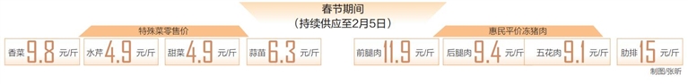 根据海南人民春节习俗和饮食喜好,海口市菜篮子集团倒排种植时间完成种植春节“特殊菜”70亩,同时积极对接岛内基地加大调运,持续投放至菜篮子末端网点。春节期间特殊菜零售价分别为:香菜9.8元/斤、水芹4.9元/斤、甜菜4.9元/斤、蒜苗6.3元/斤,将持续供应至2月5日,保障市民在春节期间能够买到放心、实惠的特殊菜品。
