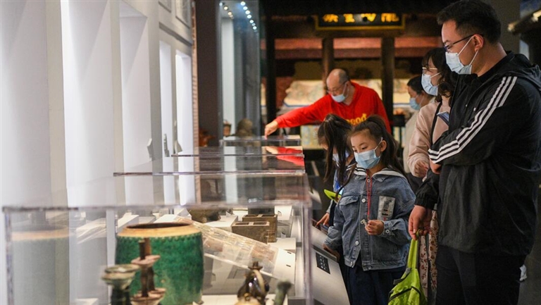 1月22日,游客在省博物馆里观展。 本报记者 袁琛 摄