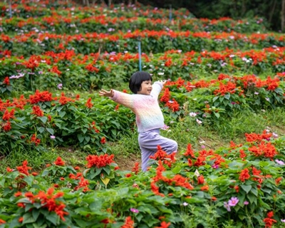 1月25日,小游客在屯昌梦幻香山的花海里玩耍。 本报记者 袁琛 摄