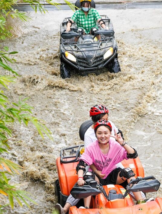 1月25日,游客在保亭槟榔谷景区体验游乐项目。 本报记者 武威 通讯员 潘达强 图/文