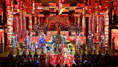 陕西西安大唐芙蓉园内上演的大型歌舞剧《梦回大唐》(1月24日摄)。