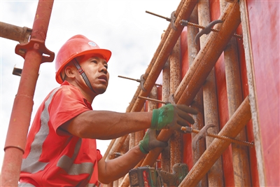 1月26日,在屯昌县海馨家园安居型商品住房项目现场,工人在作业。通讯员 林小丹 摄
