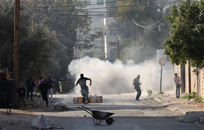 以色列军队26日在约旦河西岸北部城市杰宁与巴勒斯坦人发生冲突,打死9名巴勒斯坦人。图为巴勒斯坦抗议者与以色列军队发生冲突。新华社发
