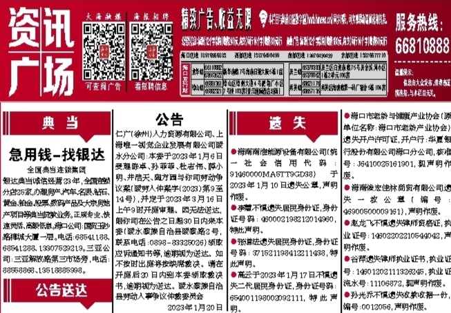 银达典当诚信经营23年,全国连锁分店25家,办理房产、汽车、名表、钻石、黄金、铂金、股票、数码产品及大宗房地产项目等典当贷款业务。正规专业、快速灵活、高额低息。海口公司:国贸玉沙路椰城大厦一层。68541188、68541288、13307529219。三亚公司:三亚解放路第三市场旁 88558868,13518885998。