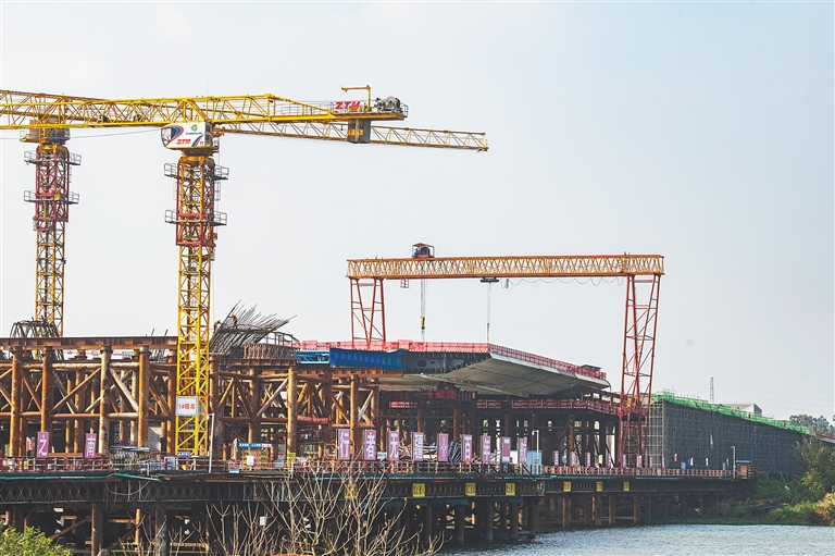 1月28日是节后开工第一天,建设工人在琼海市乐城大桥上施工。特约记者 蒙钟德 摄