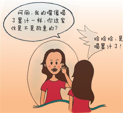 | 过了一会儿,小禾去上洗手间,在镜子里看到自己的嘴巴黑乎乎的,意识到今天的口红白涂了。 |