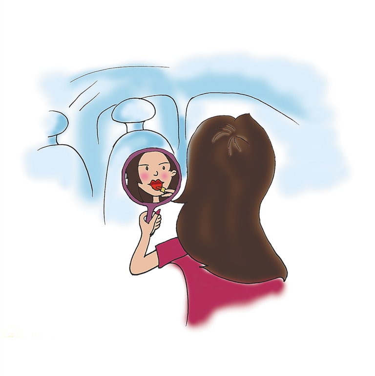 在海口工作的大学闺蜜阿丽约小禾在一家海鲜餐厅吃饭。坐出租车时,小禾拿出名牌口红花20分钟化了个妆。 |