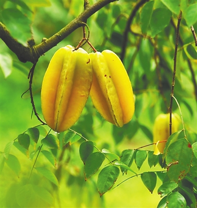 然而,光以果酸为蘸料还不够,烹饪中取之提鲜入味才是物尽其用。海南三亚有一道特色菜,名为杨桃鲜鱼汤。在历史上,杨桃最早是作为药材传入中国的,《本草纲目》记载杨桃“味极酸,上有五棱,如刻出”。厨师调制杨桃鲜鱼汤一般选用酸杨桃,挑选皮滑肉嫩的海鱼放入沸水中,再依次加入酸豆、辣椒,鱼汤出锅前加入切好备用的杨桃片,最后放油、盐调味,一锅“鲜掉眉毛”的杨桃鲜鱼汤就做好了。杨桃的果香消解了海鱼的腥味,天然的果酸令鱼汤又增几分鲜美,一口热汤下肚,顿觉鲜爽酣畅。