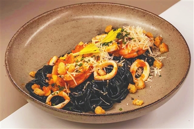“欢迎尝一尝我们的墨鱼汁意面,你会感到惊艳的!”海口湾一家西餐厅的领班陈晓舟经常向客人推荐店里的招牌菜——墨鱼汁意面,他说自己也是因为面试时品尝了这道菜而想要留在这家餐厅。每天清晨,手掌大的墨鱼被准时送到餐厅,主厨细心地将墨囊剥离后放出墨汁,然后留出足够的时间让意大利面浸泡在墨汁中,使意面的色泽呈现出一种带有光泽的深灰色。浸泡意面的时候,快速准备番茄肉酱、奶油酱等佐料。点单提示一到,拌上酱汁,不超过十五分钟,一份甜辣交织、泛着奶香的墨鱼汁意面就出现在了客人的餐桌上。