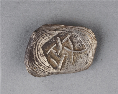 小银锭,常被叫作银锞子,《红楼梦·第十八回》讲到元春省亲时,贾母所获赐物中有“紫金笔锭如意锞十锭,吉庆有鱼银锞十锭”。“笔锭如意”和“吉庆有鱼”应是金、银锭上的戳记,谐音为“必定如意”和“吉庆有余”。定安县博物馆所藏的数十枚银锭基本上都是小银锞子,其中不少银锭上压有戳记,这些戳记多呈长方形,其中以一个或两个文字居多,可辨识的有“金”“吉利”“仁”“昌”“定莊”“政”“礼”“会”等,大都是有正面寓意的文字,其中“定莊”可能与传统的博具麻将相关。戳印的文字大部分打破了锭面原有丝纹的连续性,所以戳记明显是银锭铸好后加盖上去的。