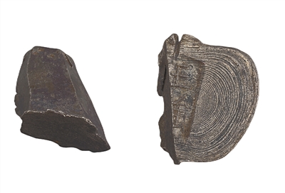 北宋早期承袭唐代的船形银铤,并演变为平头束腰。热播剧《梦华录》中就曾出现过金、银铤,故事的时代背景就是北宋早期的宋真宗时期,按说银铤形制应是平头束腰,但道具却是圆首束腰,所以剧中道具形制明显与时代不符,圆首束腰的金、银铤多见于后来的南宋和金朝。不过细看剧中的银铤,有明显的同心丝纹,这种丝纹是古代银锭常见的形态特征,这是银在由液态向固态转变即铸造成型时留下的痕迹,就这点来说,《梦华录》的道具制作还较为讲究。不过道具底部没有真银铤常见的蜂窝孔洞算是一处纰漏。蜂窝孔洞是白银在融化过程中吸收气体冷凝后留下的空间,一般呈圆孔状,有些孔内会产生“滴珠”,绝大多数的银锭不论大小底部一般都会有这种蜂窝孔洞。现在市面上的假银锭,有些在模具上直接做出很多个突出的圆珠,铸造成型后的银锭蜂窝孔洞大都十分规整;有些是铸好银锭后用尖锥錾刻出蜂窝,较之真品明显不自然。