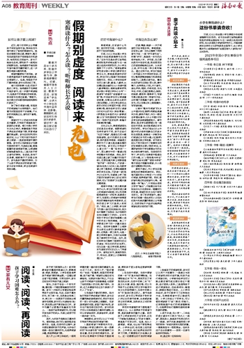 王先云认为,寒假阅读首先应该是自主阅读。假期阅读和在学校读书不同,孩子应进行“无压力阅读”,根据自己的兴趣选择读物,进行沉浸式自主阅读;其次是延伸阅读。统编语文教材中不少课文是名著名篇的片段节选。家长可以引导孩子从课文的“一篇”延伸到“一本”,即从教材中的一篇课文延伸到整本书的阅读。例如,孩子在语文课上读了冯骥才的《刷子李》,还想知道天津卫有哪些像“刷子李”一样的奇人,不妨读一读《俗世奇人》这本小说;在数学课上学了圆周率,还想知道圆周率的来龙去脉,不妨读一读《祖冲之》这本书;在课堂上学了杨万里的《宿新市徐公店》这首田园诗,可以“田园诗”为主题开展主题阅读。